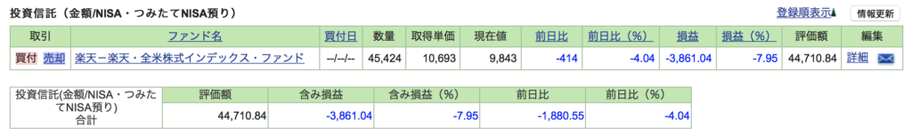 楽天・全米株式インデックスファンド(楽天VTI)を、1619円を平日毎日積み立てる設定にしています。