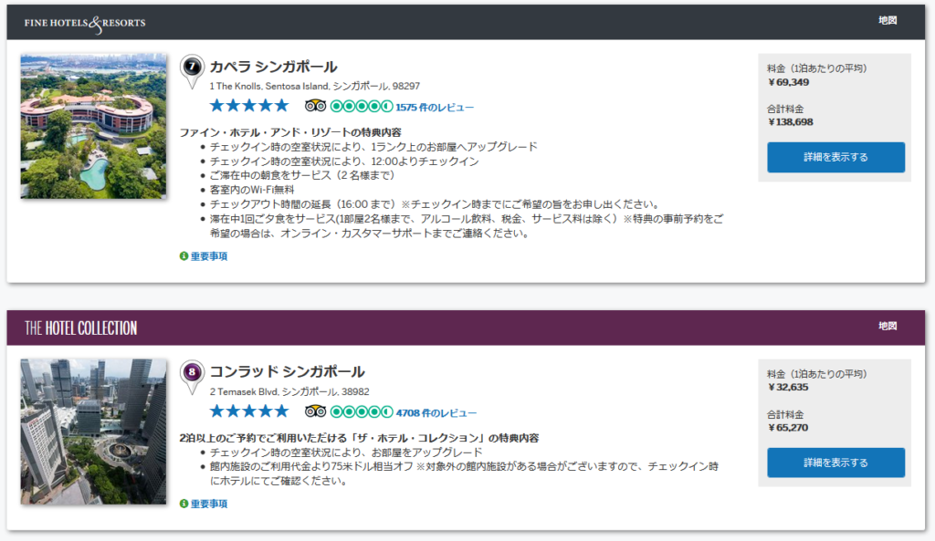 こちらの「ザ・ホテル・コレクション」は、対応しているホテルがFHRとは違います