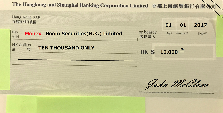 2017年夏頃、香港の証券会社であるMonex Boom Securitiesの口座開設を郵送にて行いました。