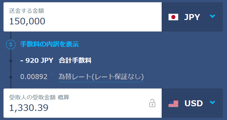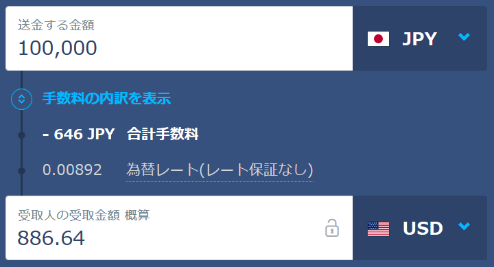TransferWiseでの送金手数料はJPY 100+0.55%のみで、為替手数料はほぼかかりません!!
