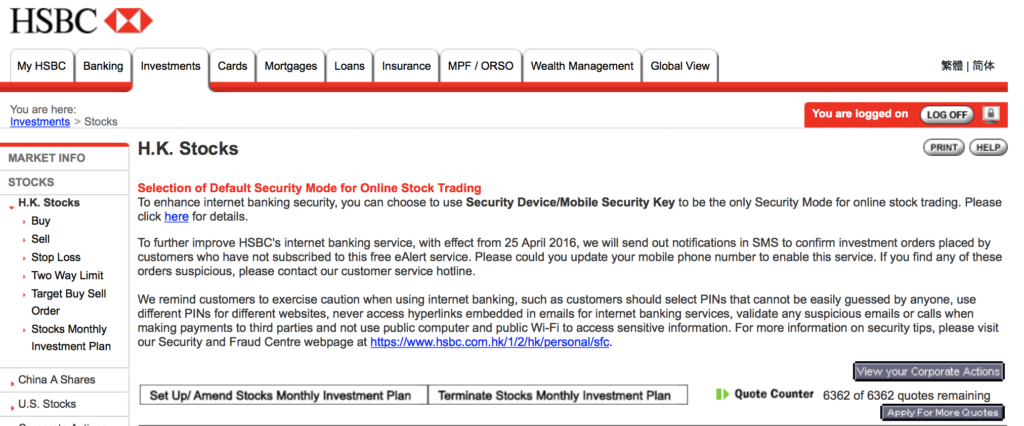 【HSBC香港】Stocks Monthly Investment Plan (株の定額積立サービス)