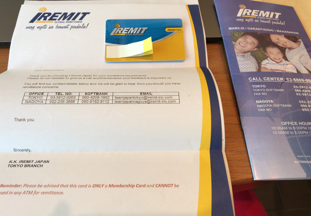 iRemitの銀行口座があるので、そこに日本円で送金(国内送金)して、送金した額をiRemitに電話を入れて伝えます。