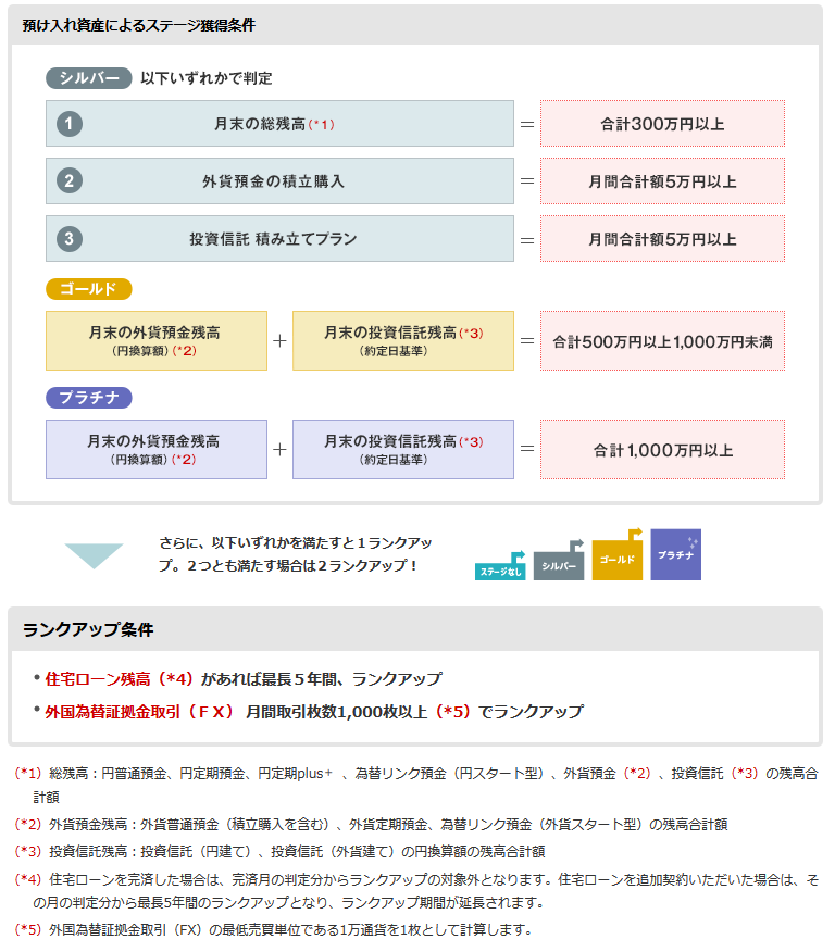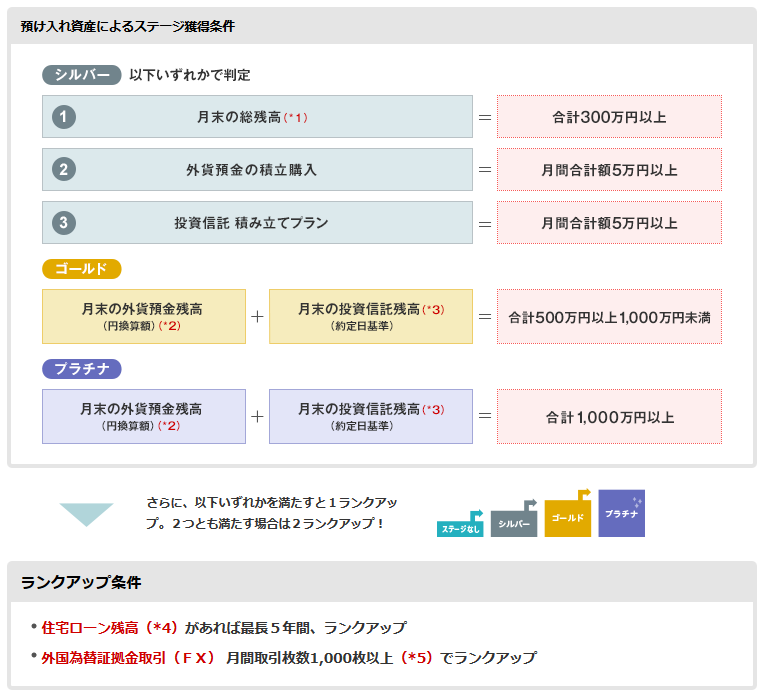 優遇プログラムClub S(ゴールド)は、外貨+投信残高が500万円以上必要となります。ソニー銀行に金融資産を多めに預けれる方、ソニー銀行でFXをやっている方はゴールド以上になれるので、最強となります。