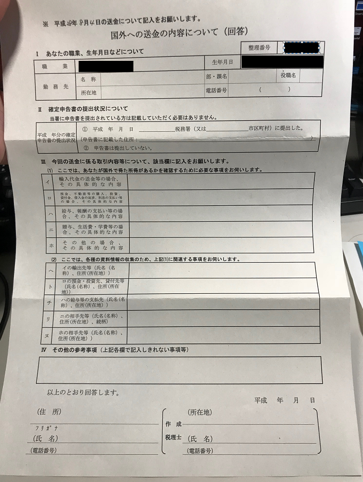 私の場合は1年以上経過してからの出来事でした(笑)税務署に返信して終了です。